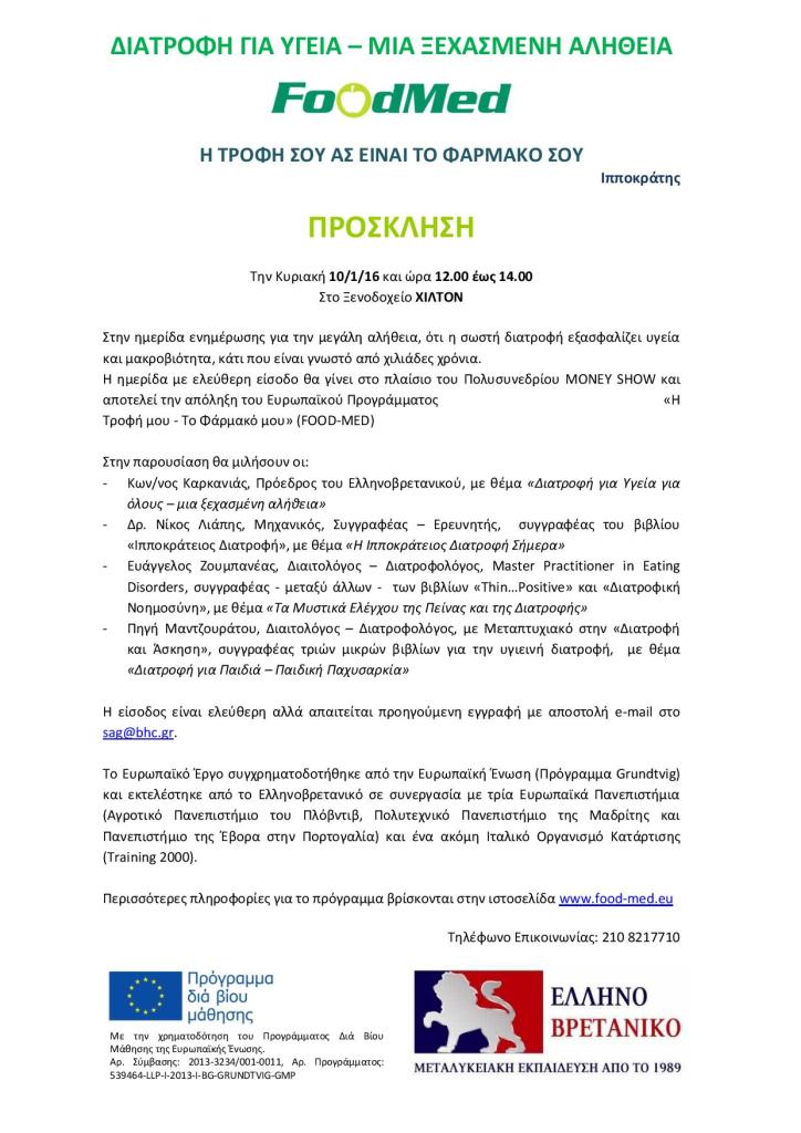 Ημερίδα με ελεύθερη είσοδο "Διατροφή για υγεία-μια ξεχασμένη αλήθεια"